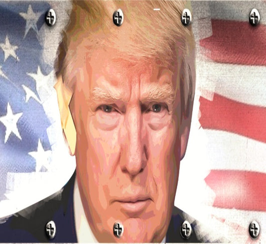 PATRIOT PREMIUM Trump Face w Flag n Soldiers
